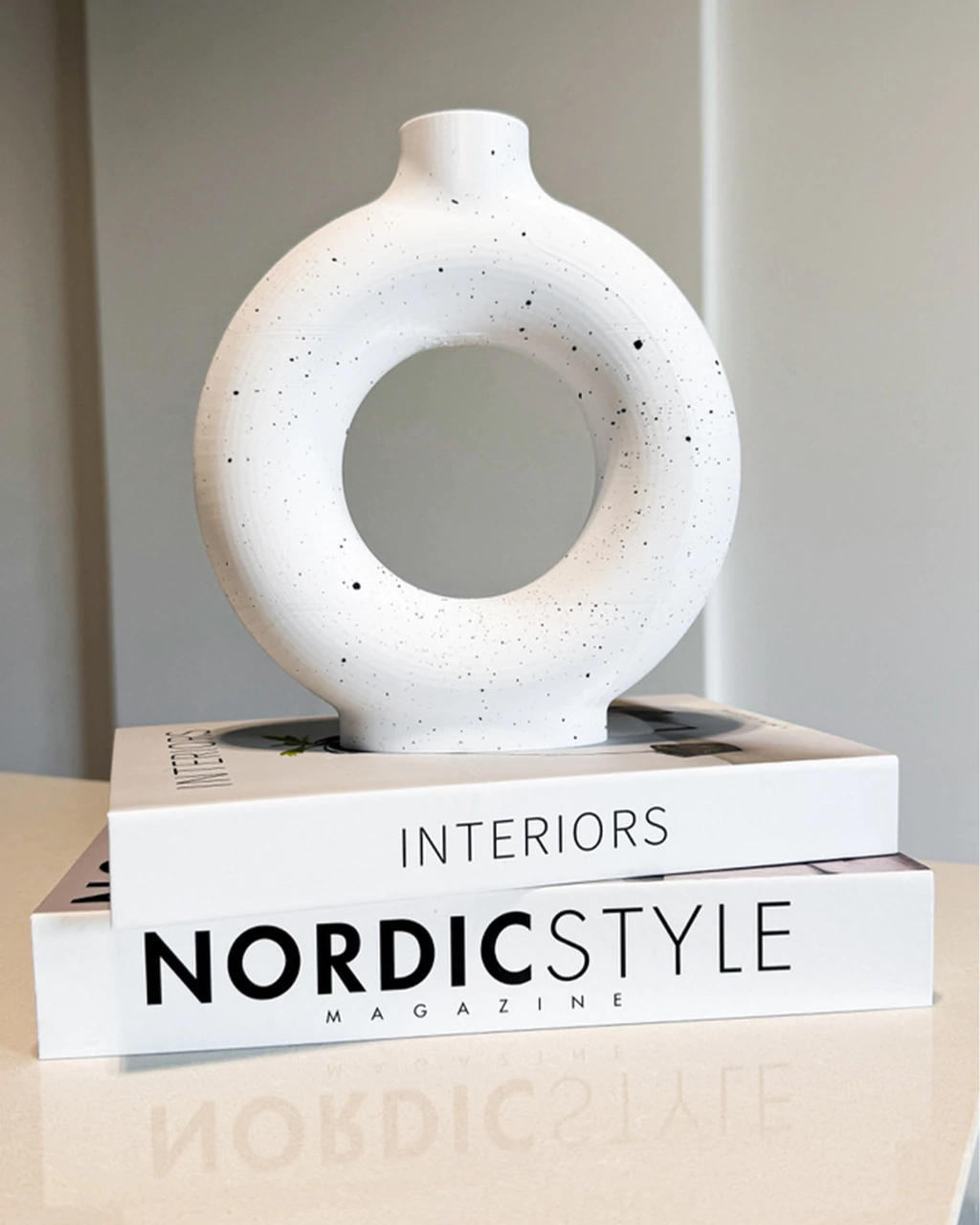 Diseñamos y fabricamos cada pieza mediante impresión 3D, con una terminación mate que realza su textura y forma. Utilizamos un material biodegradable y de origen vegetal, obtenido a partir de recursos naturales como el almidón de maíz y la caña de azúcar.